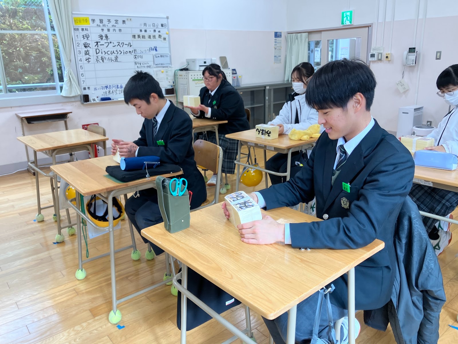 まずはじめに、税金には約50種類以上あることを教えていただきました。身近な消費税だけでなく、所得税や自動車税、固定資産税など、私たちの生活を支えるさまざまな税が存在することを知り、驚きの声が上がりました。続いて、義務教育にどれほどの費用がかかっているのかを学びました。実は、小・中学校9年間で約1,000万円の費用がかかっており、その多くが税金でまかなわれています。授業では、この「1,000万円」を実感してもらうために、1,000万円のレプリカが入ったジュラルミンケースを登場させ、1人ずつ実際に持たせてもらう体験をしました。生徒たちはその重さに驚きつつ、税金の大きさや重要性を実感している様子でした。さらに、動画を通して「税金は何のためにあるのか」を学習したほか、グループワークでは、さまざまな立場を想定しながら公平な税率について話し合う活動も行いました。自分たちの意見を出し合い、よりよい社会のあり方を考える貴重な機会となりました。